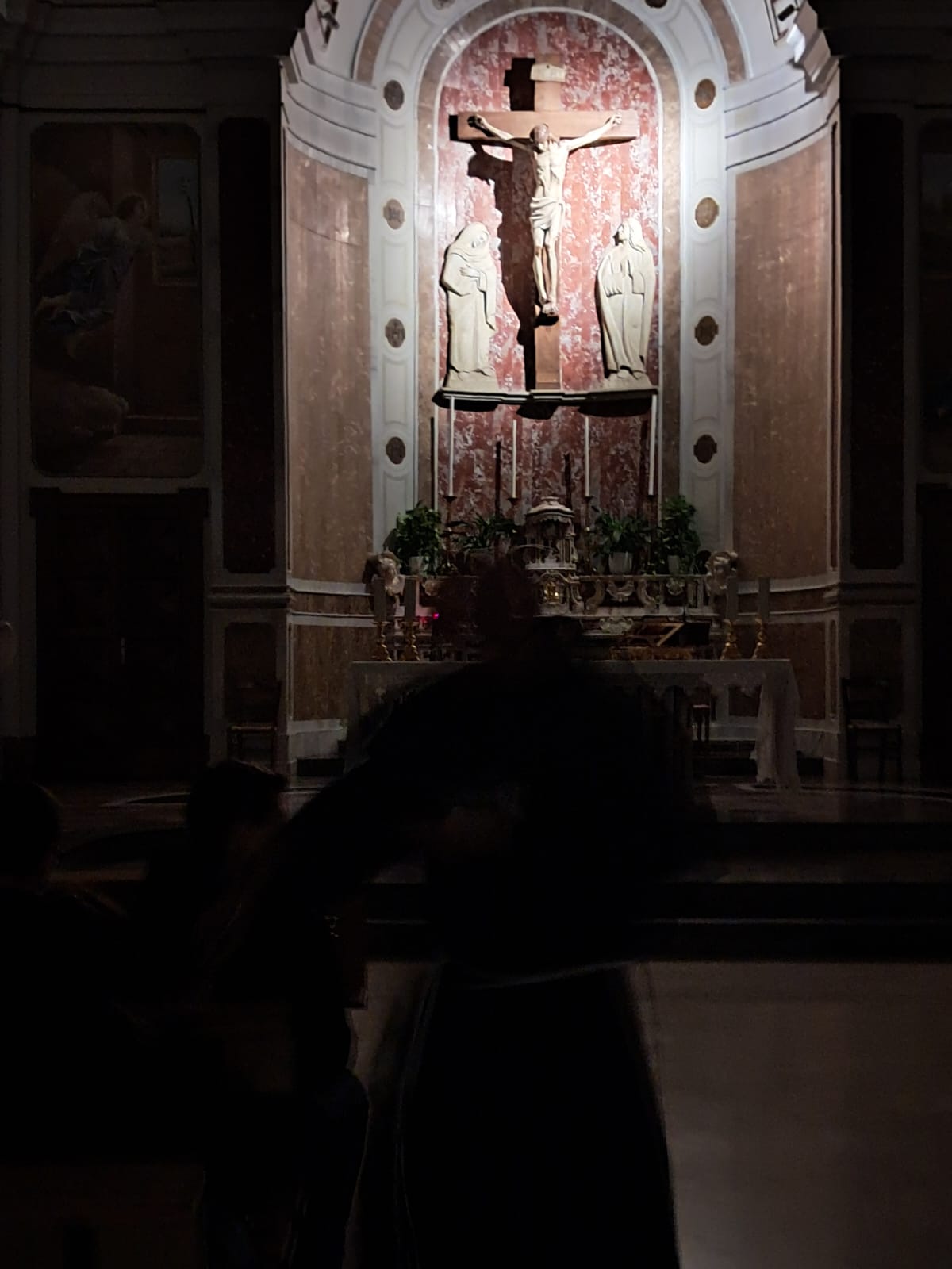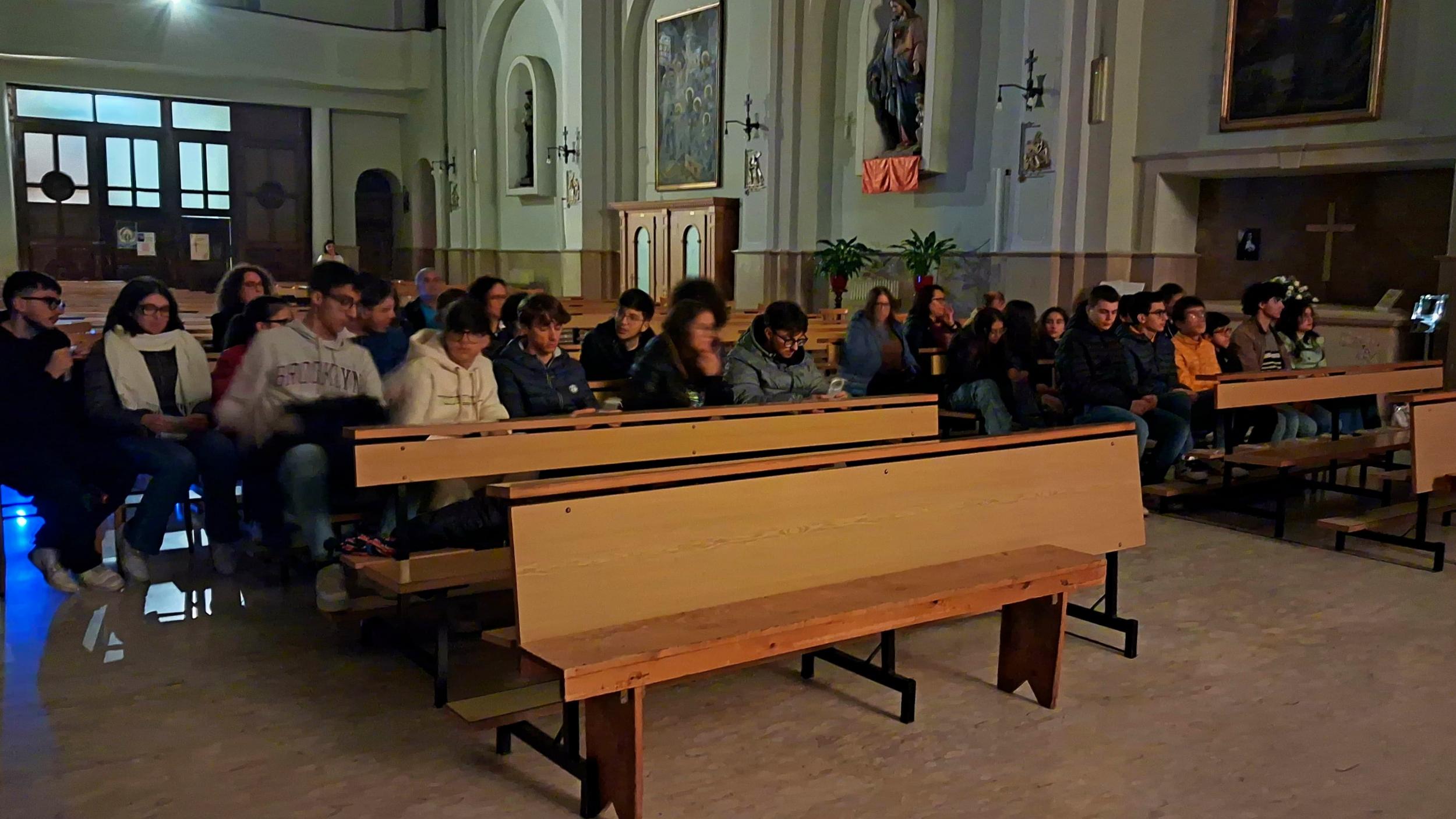 Alla fine del cammino, abbiamo raggiunto la nostra Parrocchia dove il parroco ci attendeva sotto la croce per raccogliere le parole belle risuonate dentro i nostri cuori: dono, umiltà, originalità, povertà, eucarestia, resilienza, amore, semplicità, castità. Il momento culminante della serata è stata l'Adorazione dell'Eucarestia, la Vera Luce, fonte di Santità. Nella preghiera silenziosa abbiamo consegnato a Gesù tutti i nostri sogni e il forte desiderio di essere santi.