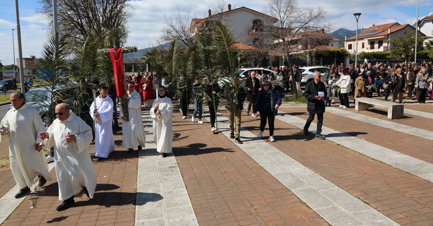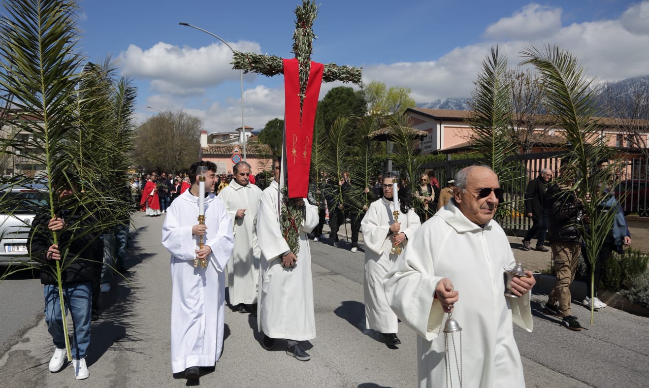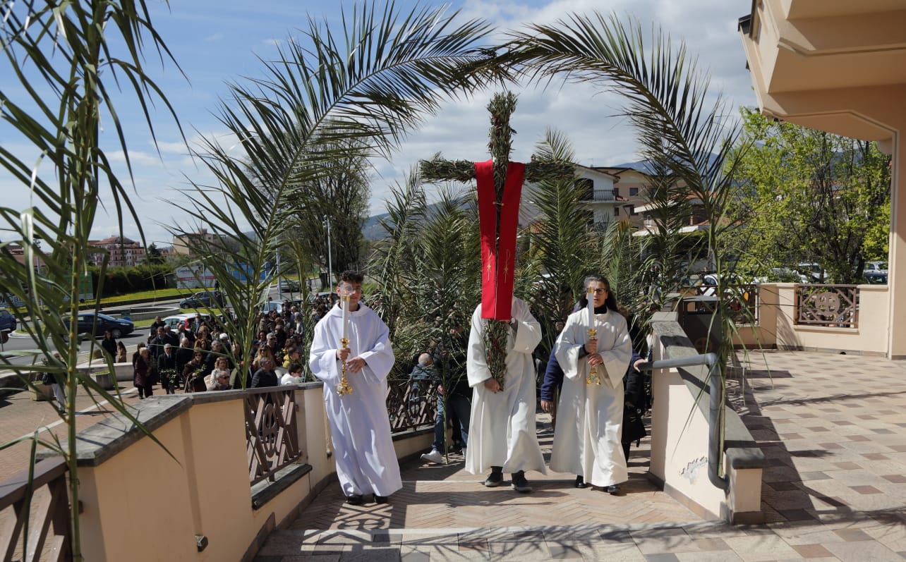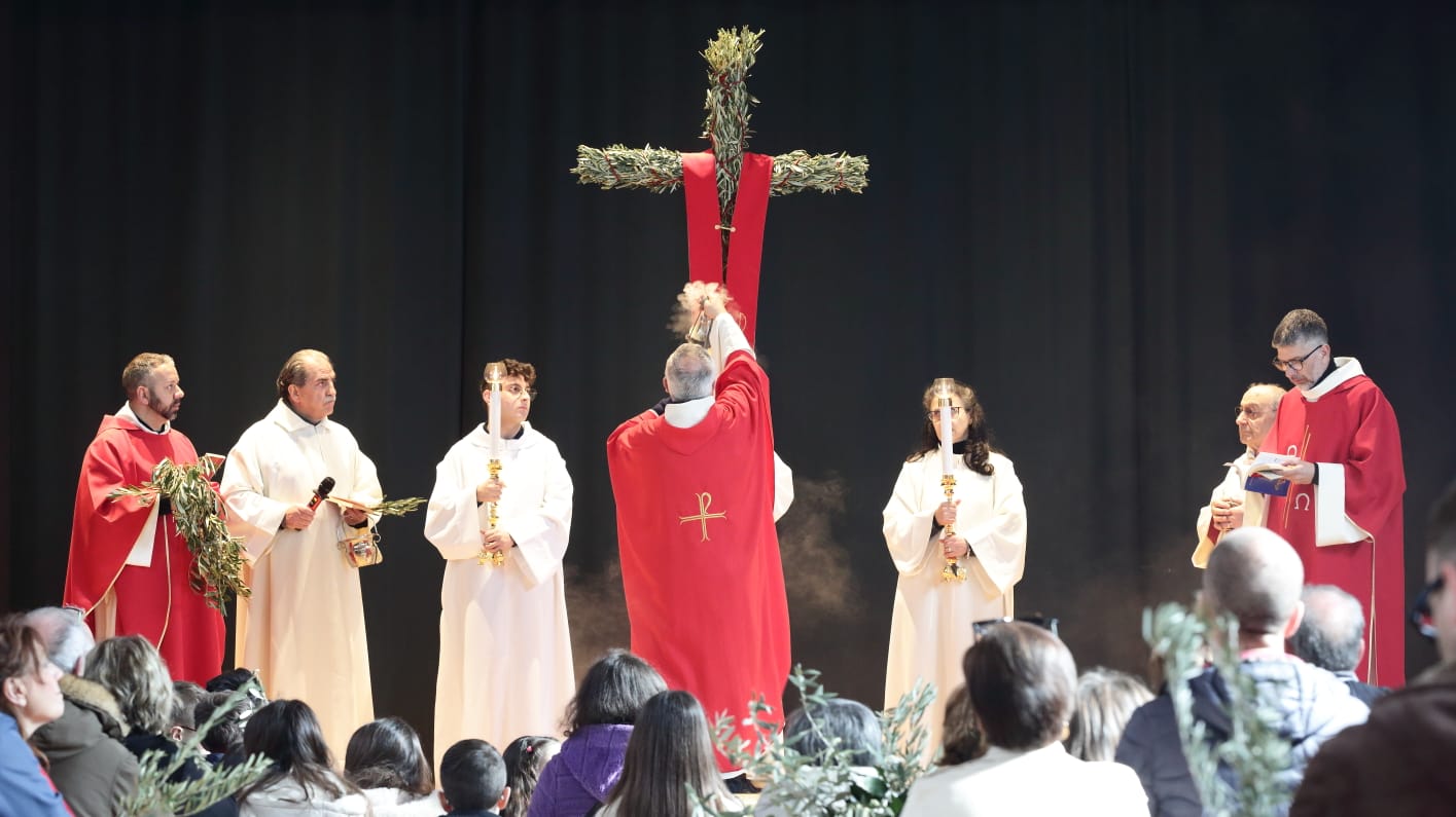 Questo c'entra con la bellezza e la gioia menzionate continuamente - e non a caso- durante la celebrazione della Messa, dove è stata ripetuta la benedizione delle palme nell'area antistante la chiesa, luogo iniziale da dove è partita la piccola processione che ha portato la Croce ed i fedeli in chiesa.
