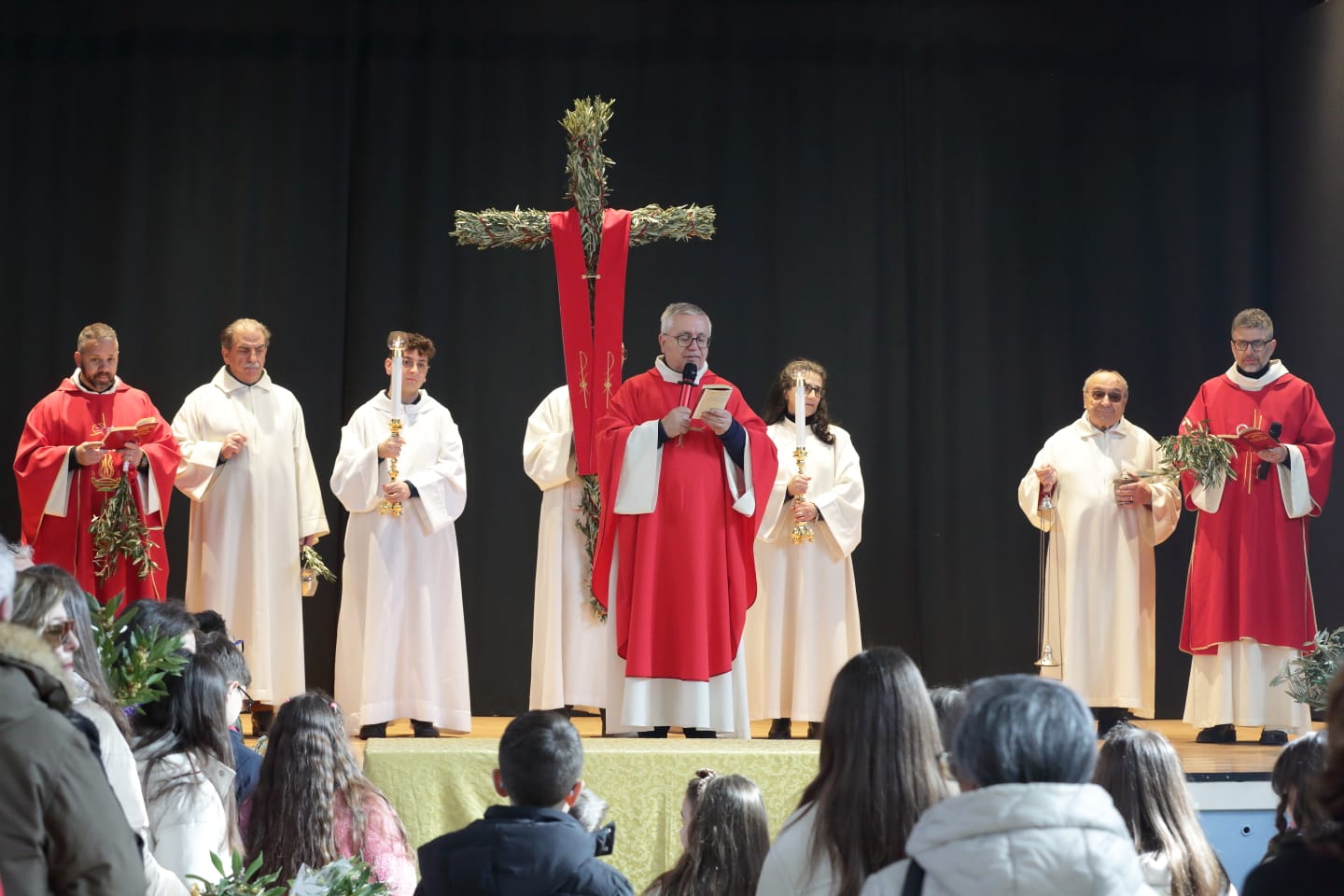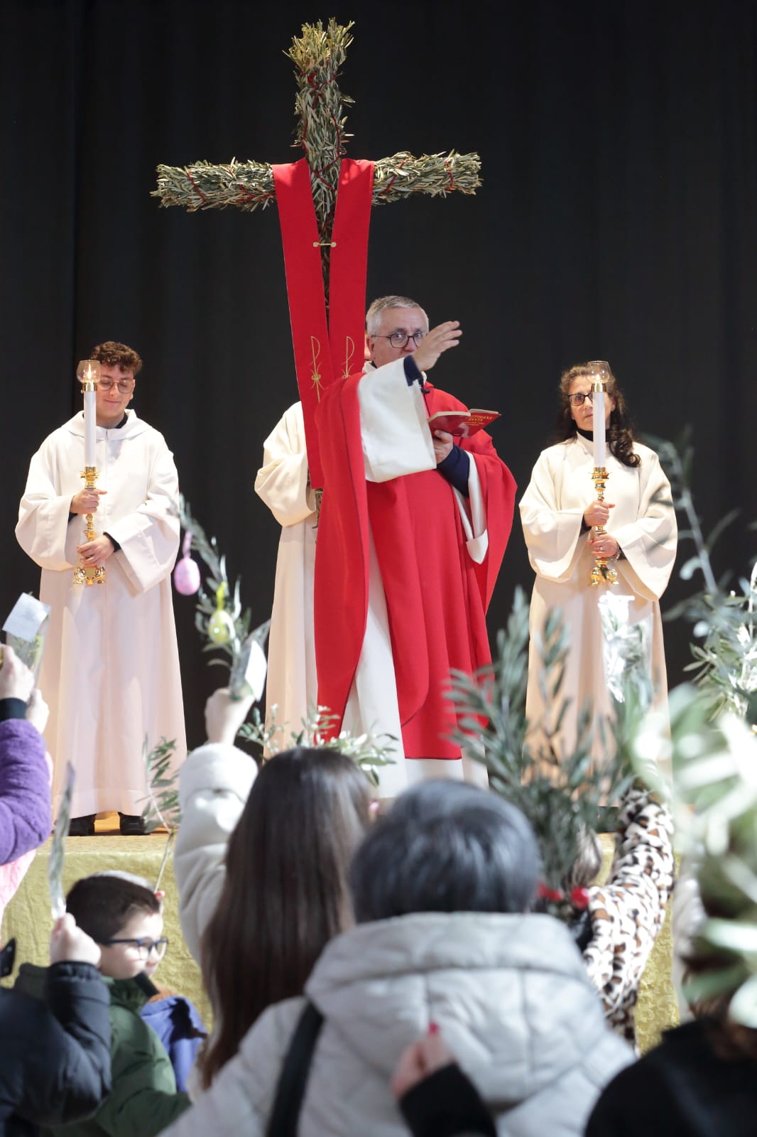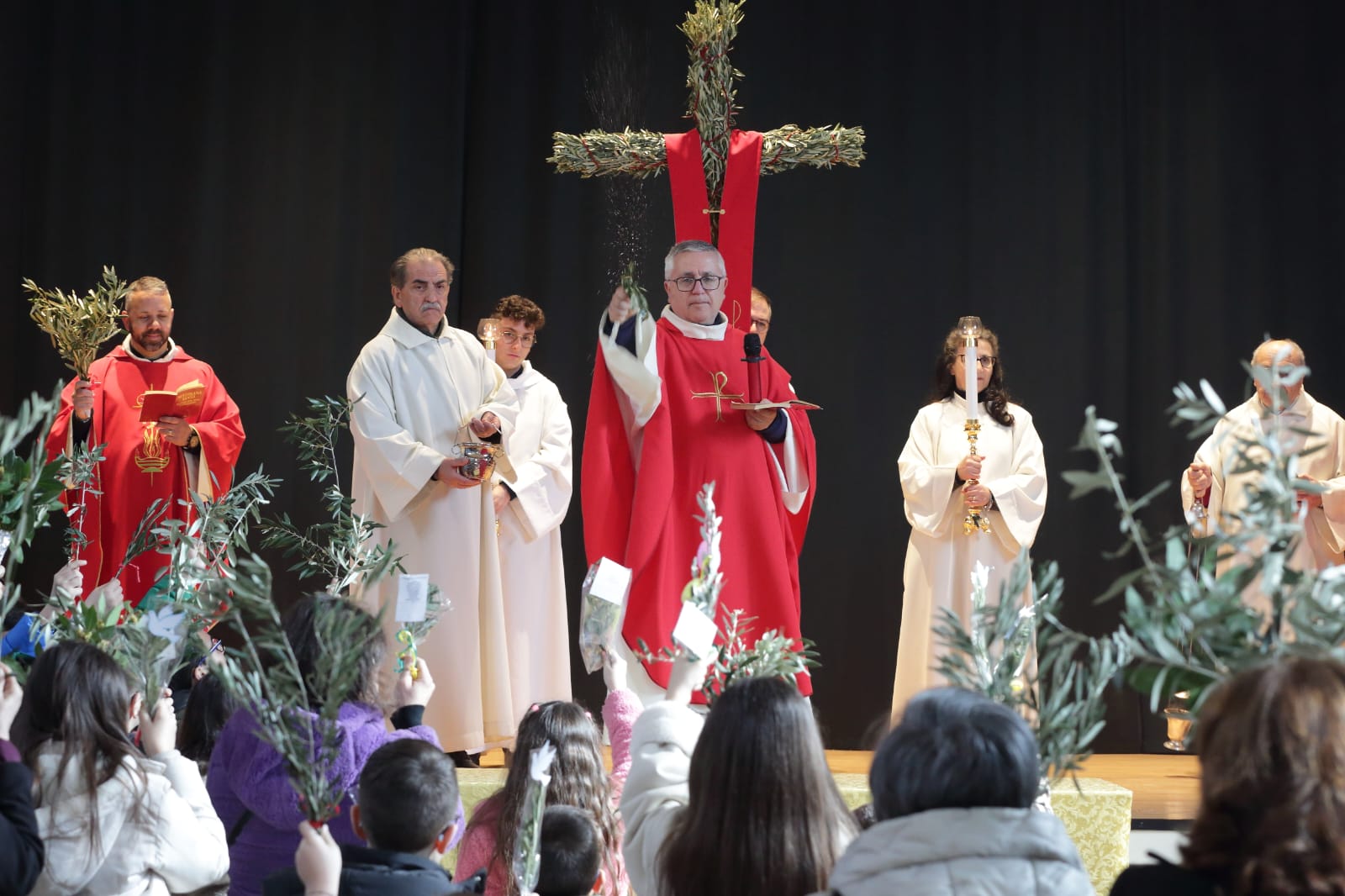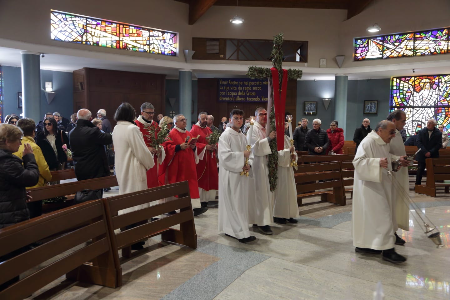 Questo c'entra con la bellezza e la gioia menzionate continuamente - e non a caso- durante la celebrazione della Messa, dove è stata ripetuta la benedizione delle palme nell'area antistante la chiesa, luogo iniziale da dove è partita la piccola processione che ha portato la Croce ed i fedeli in chiesa.
