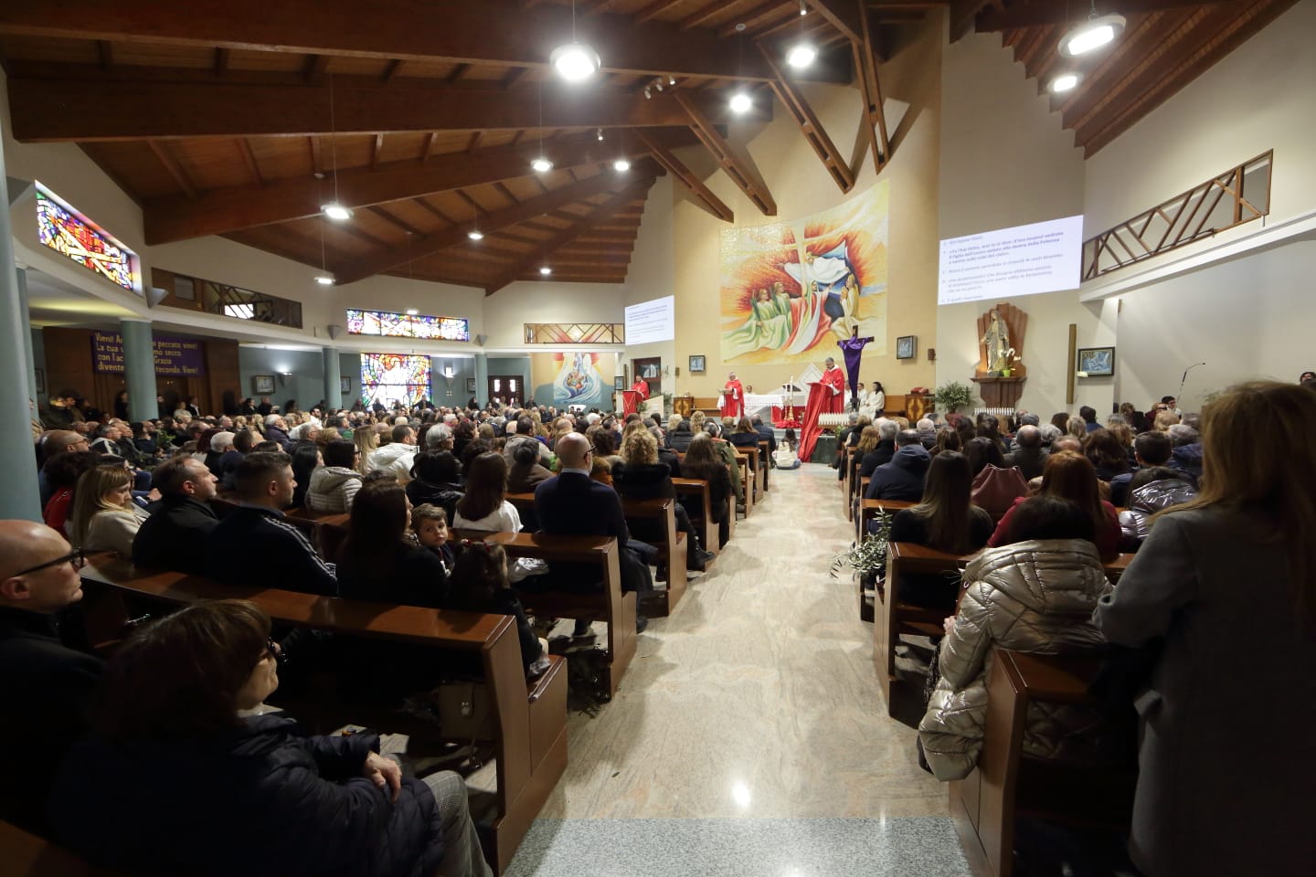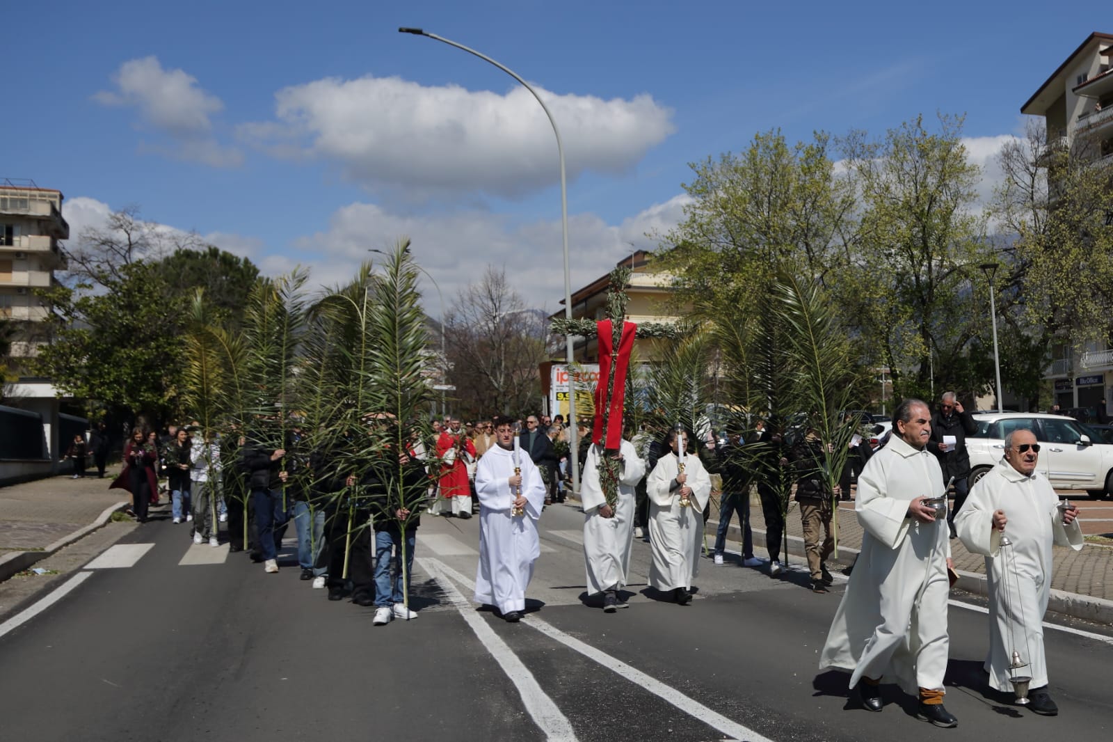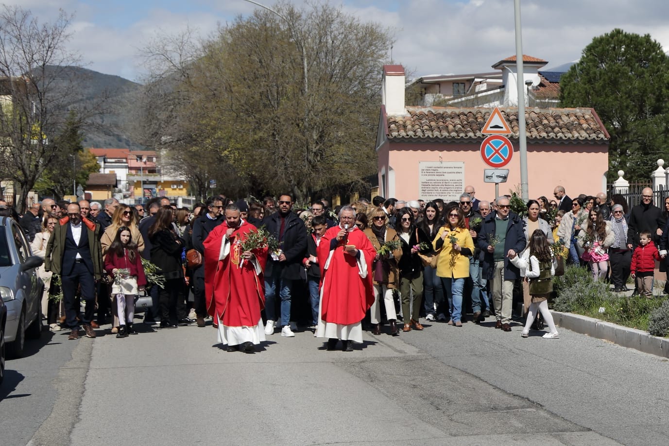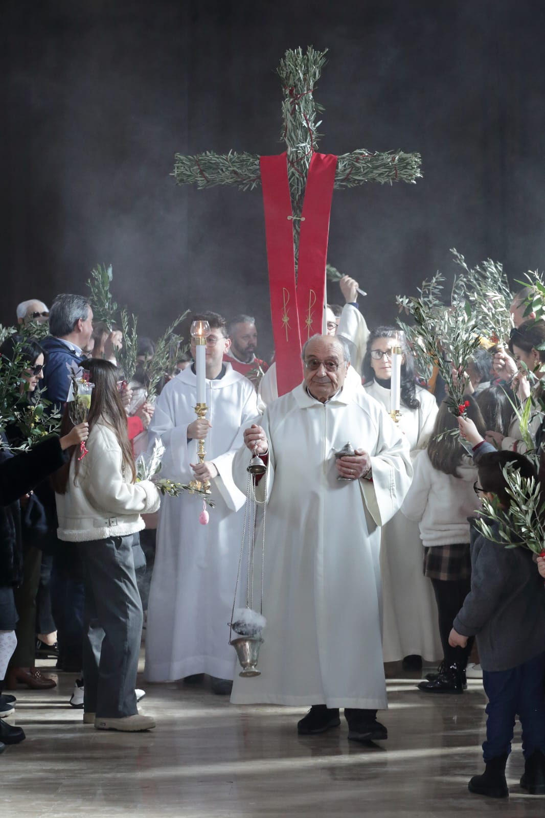 Questo c'entra con la bellezza e la gioia menzionate continuamente - e non a caso- durante la celebrazione della Messa, dove è stata ripetuta la benedizione delle palme nell'area antistante la chiesa, luogo iniziale da dove è partita la piccola processione che ha portato la Croce ed i fedeli in chiesa.